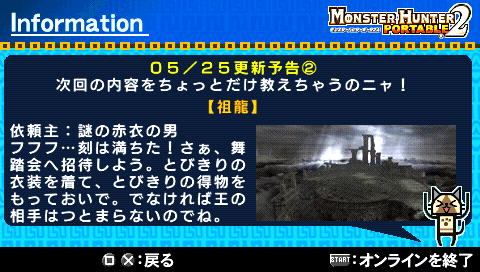 遂に公式(イベントクエスト)で祖龍がでるんすね ミラアンセスだっけ?まぁいいや、今まで雲隠れのチャットなどでも 何回も改クエよこせ×∞ などと言われてきましたが コレでそれもなくなるわけですか・・・ 自分は一回しかやったことないけど 結構、普通・・・(CWC等無) 糸冬 了